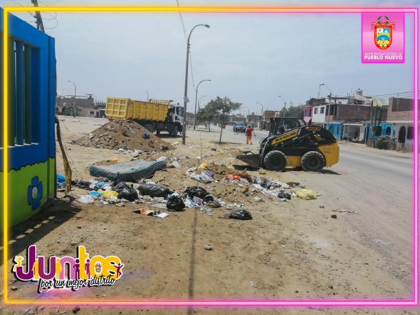Continuando con el trabajo en mejoras de cercos, nivelación y limpieza de calles, llegó hasta el sector del AA.HH. El Salvador para ejecutar la limpieza de residuos sólidos y escombros, asimismo realizó la nivelación del suelo.