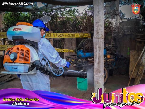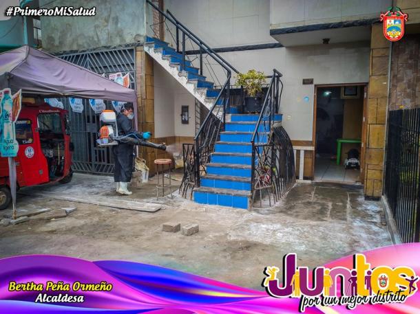Esta vez el personal municipal denominado "EQUIPO MUNICIPAL DE LUCHA CONTRA EL COVID-19", se apersonó hasta la Av. Unión para la continuación de esta labor, beneficiando a más vecinos del distrito. Debemos precisar que hace algunos días la comuna distrital culminó en en AA.HH. San Isidro, posterior a ello ha intervenido los sectores de AA.HH. Los Rosales, y AA.HH. Los Álamos, UPIS EMANUEL