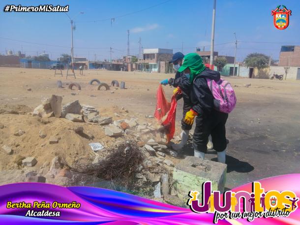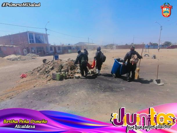 Desde muy temprano personal del área de limpieza pública con el apoyo de las nuevas maquinarias adquiridas recientemente, llevaron a cabo la limpieza de su plaza principal y calles adyacentes del AA.HH. El Trébol. Aquí se pudo encontrar diversos montículos de residuos de construcción que de forma imprudente y hasta malintencionada son abandonados por malos vecinos que sin importarle la salud de su propio asentamiento los abandonan en plena vía pública, toda vez que al existir estos montículos, otros imprudentes vecinos arrojan sus desperdicios convirtiéndolos en un basural. Al respecto hay que aclarar que en este lugar el camión recolector ingresa tres veces por semana, martes, jueves y sábado, no existiendo entonces excusas para dejar sus desperdicios en la calle.