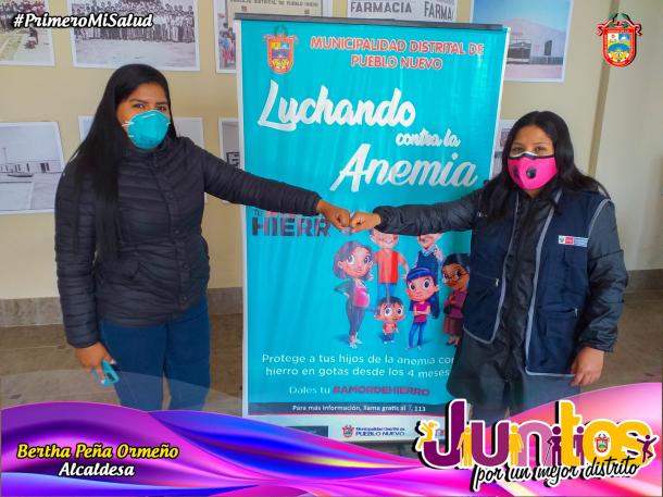Actualmente en el distrito de Pueblo Nuevo se viene trabajando con 24 actoras sociales quienes tienen la función de monitorear el proceso de recuperación de los niños concerniente a la anemia que pueda presentar, para ello la comuna distrital ha entregado a cada actora social los implementos de bioseguridad que le permita visitar los domicilios y entrevistarse con los padres sin ningún temor.