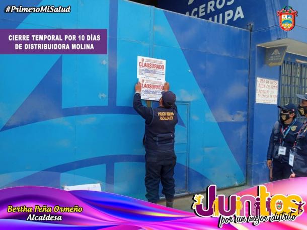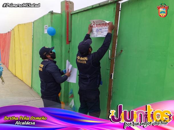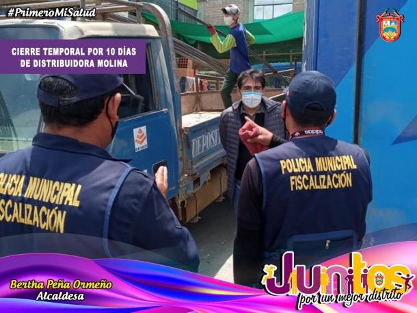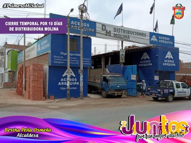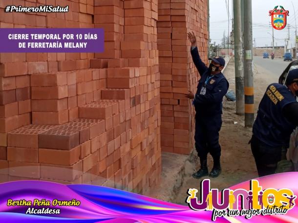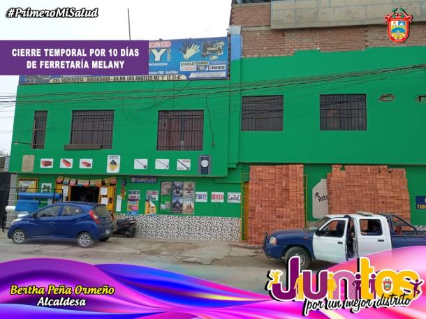 Los comercios intervenidos fueron: Distribuciones “Molina”, ubicado en la Urb. León de Vivero Mz. R-1” Lt. 11; Multiventas e Inversiones “Melany E.I.R.L.”, ubicado en el AA.HH. Los Ángeles Mz. F Lt. 11-A y en el mal llamado "Mercado de Contingencia". En el caso de las ferreterías se le aplica la sanción que corresponde a una falta común, como es el uso de las vías públicas para exhibir sus materiales de construcción, situación que fomenta el desorden y desconocimiento a la autoridad, por otro lado interrumpe el paso de los peatones obligándolos a desviar su tránsito fuera de la acera y en el último caso no cuentan con licencia de funcionamiento.