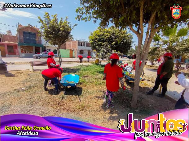 Debemos precisar que los trabajos a ejecutar constan de limpieza, desinfección, reparación de bancas, eliminación de malezas y mejoramiento en áreas verdes tanto en su principal parque y alrededores, entre otros trabajos.