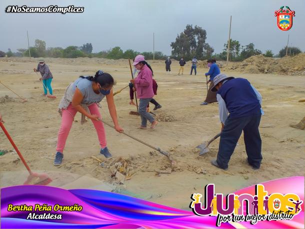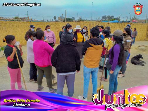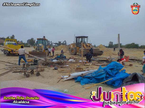 La alcadesa del distrito de Pueblo Nuevo, Bertha Peña Ormeño; dispuso la eliminación de todo el montículo que se había formado en en lugares que son parte del espacio público de los moradores. Toda esta labor fue respaldada por el personal municipal y las maquinarias pesadas, con las que cuenta la comuna, como: cargador frontal, minicargadores, volquetes y tanques cisterna. El lugar quedó completamente limpio, existiendo el compromiso de parte de los vecinos del asentamiento humano de cuidar y resguardar, que personas de otros lugares no utilicen como botadero de basura o desmonte todo este sector. A este compromiso se sumó la alcaldesa, de brindar el apoyo necesario para mejorar este asentamiento humano y sobre todo la atención de los servicios públicos.