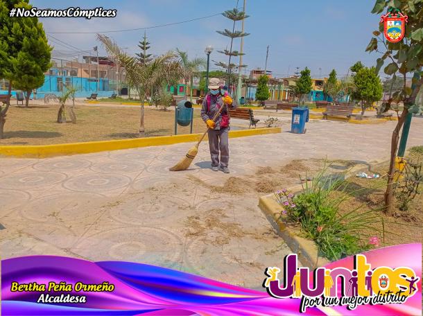 Estos trabajos se llevan a cabo con el objetivo de velar por la salud de nuestros vecinos, así como de preservar la limpieza de su parque. En ese sentido la autoridad edil Sra. Bertha Peña Ormeño viene siguiendo de cerca estos trabajos para promover una cultura ambiental a fin de que los vecinos sean partícipes de los esfuerzos que realizan las autoridades por mejorar y mantener el orden, limpieza y embellecimiento de Pueblo Nuevo.
