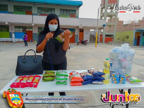 Entre los alimentos que entregaran figuran arroz fortificado, conserva de pescado, leche evaporada, fideos, menestras, aceite vegetal, azúcar entre otros, los cuales incluirán en las 20 mil bolsas aproximadamente que entregarán a las personas más vulnerables del distrito.
