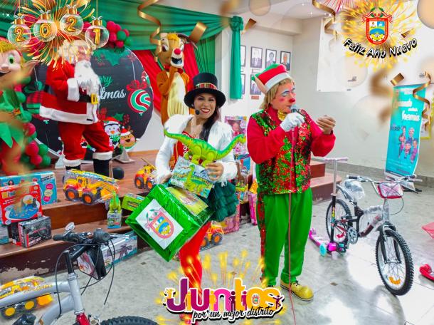 Con el único objetivo de llevar alegría a nuestros niños, la comuna distrital liderado por su Alcaldesa BERTHA PEÑA ORMEÑO, se hicieron presente con un Show Virtual Navideño para robar sonrisas de los cientos de niños que participaron a través de la plataforma de Facebook y mediante el Canal 10 donde se llevaron muchos regalos.