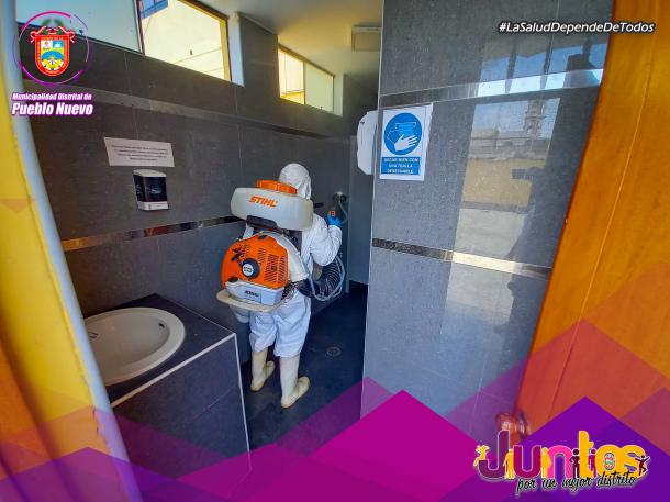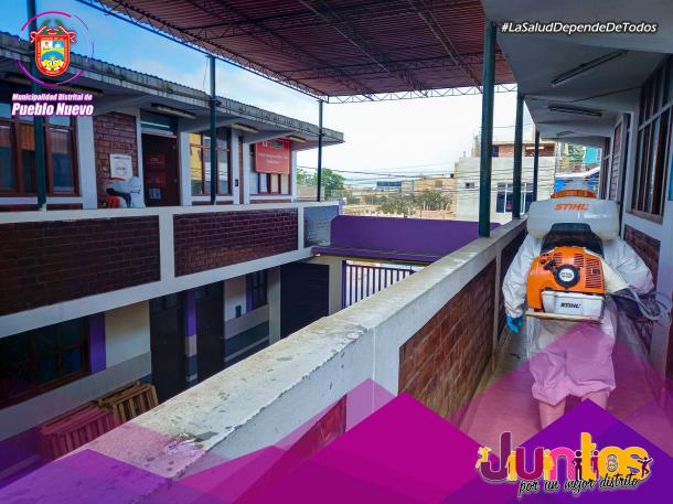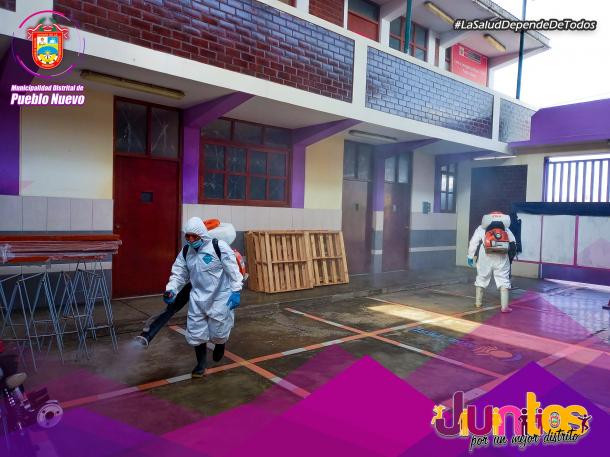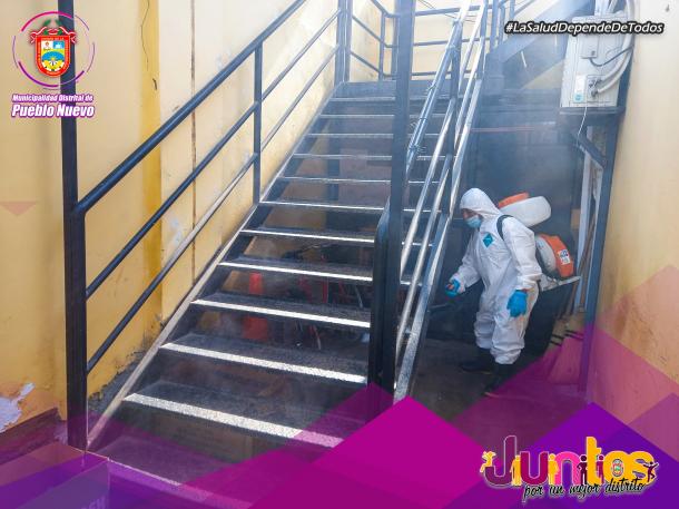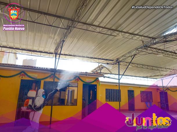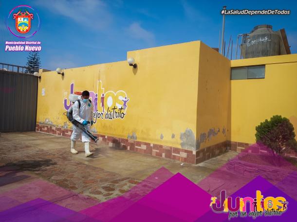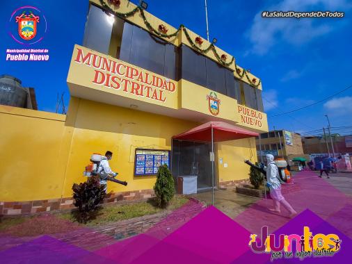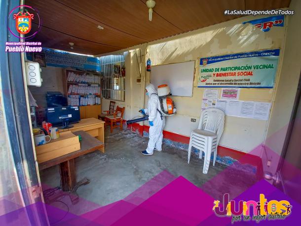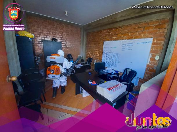 Siguiendo los protocolos sanitarios de cuidado de la salud tanto de trabajadores de la Comuna Distrital y Vecinos que acuden por diferentes trámites a la casa municipal, la actual gestión liderado por su Alcaldesa BERTHA PEÑA ORMEÑO, realizó la desinfección de todos los ambientes tanto interior y exterior del municipio edil.