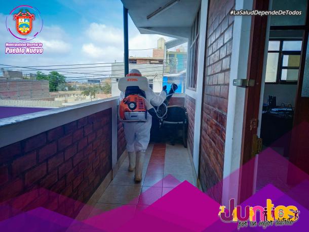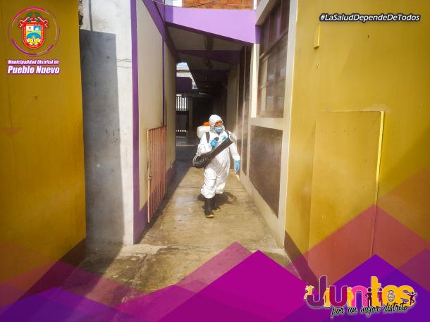 Como en anteriores ocasiones, en donde se llegó a desinfectar las viviendas del distrito y entidades públicas, se utilizó el AMONIO CUATERNARIO, un potente virucida que su uso ya es muy común con la situación actual de la pandemia por el COVID-19.