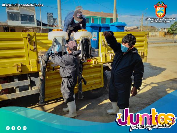 La desinfección se realiza con el propio personal e implementos de la entidad edil como las mochilas pulverizadoras y para tal fin se usa el potente virucida amonio cuaternario de quinta generación, el cual tiene propiedades antimicrobianas, de manera que aporta soluciones fungicidas, bactericidas y viricidas al mismo tiempo. Sus ingredientes activos se consideran menos tóxicos que el cloro y los fenólicos, y menos dañinos para el medioambiente y la salud humana que otros desinfectantes de uso habitual.