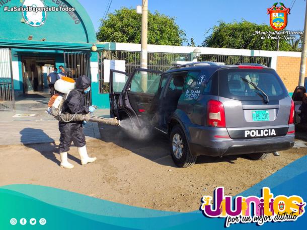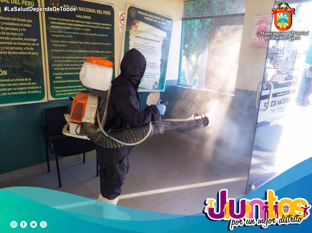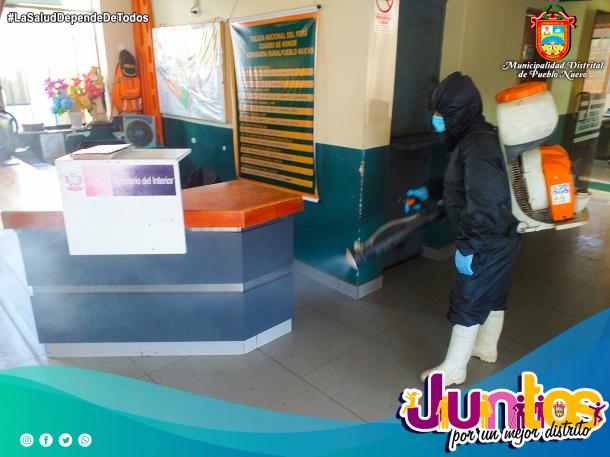 Ayer la labor de desinfección fue realizada en la comisaría del distrito, el personal municipal ingreso a cada ambiente del puesto policial esparciendo el desinfectante amonio cuaternario, todos provistos de mascarillas, guantes y todos los implementos personales para la pulverización de la comisaría. Como es sabida, esta institución pública es un lugar de gran afluencia de personas por los diversos casos que manejan, así como de la cantidad de personal que trabaja y que diariamente salen a las calles a cumplir su labor.