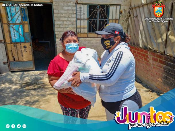 La Municipalidad Distrital de Pueblo Nuevo realizo la gestión para la entrega de 20 mil bolsas de alimentos, de los cuales en la actualidad solo falta la entrega para el cercado del distrito, Av. Unión y los asentamientos humanos Constanza Mendoza y 28 de Septiembre.