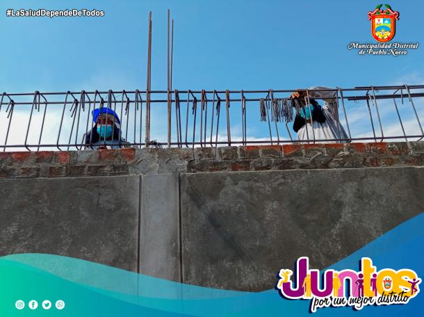Al respecto el ingeniero residente de la empresa constructora "CONSORCIO PUEBLO NUEVO" Carlos Quintanilla indica que la obra tiene un avance importante, por lo que este mes se estará culminando con el techado de las dos aulas, la construcción de la escalera, para posteriormente iniciar con los acabados, en tal sentido, la culminación de los trabajos se estarían culminando antes de la fecha prevista, añadió.