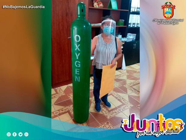 En tal sentido y siempre en beneficio de los que menos tienen, la alcaldesa BERTHA PEÑA ORMEÑO, continúa apoyando a las personas que han resultado contagiados con el CORONAVIRUS, entregándoles gratuitamente balones con oxígeno medicinal de 10 m3, previa receta médica.
