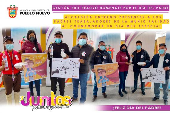 Para tal ocasión y de acuerdo a las gestiones realizadas, la autoridad edil hizo entrega de presente para cada PADRE, dicho acto se desarrolló cumpliendo con los protocolos de bioseguridad, el cual establece el distanciamiento y uso de mascarillas.