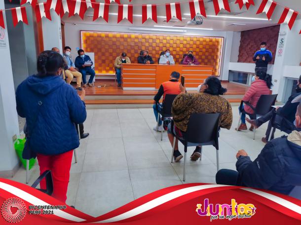 En dicha reunión también estuvieron presentes los presidentes del AA.HH Nueva Esperanza - Alfonso Chávez Huari, del AA.HH Las Lomas - Diana Llanos Mansilla, del AA.HH. Lucio Juarez Ochoa - Giovana Laguna Ciudad, del AA.HH. LAS ROCAS - Digna Ocaña Blaz, del AA.HH Satélite Primaveral - Norma Romaní Bendezu y del AA.HH Las Casuarinas - Melquiades Chipa.