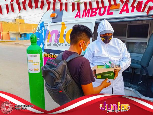 Actualmente el índice de contagio y atención ha disminuido en el distrito, gracias a Dios en la última semana solo se ha registrado la solicitud de balón de oxígeno para una sola persona, en ese sentido se pide a todos a no bajar la guardia, debemos seguir cuidándonos y sobre todo cumpliendo estrictamente el uso de la mascarilla, la desinfección constante, mantener el distanciamiento y evitar aún las reuniones masivas en casa.