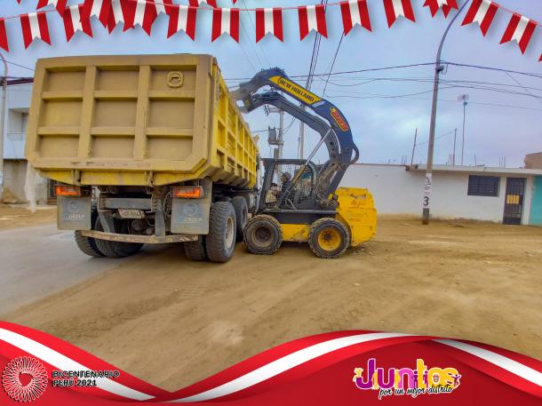 A su vez también se realizó una campaña de limpieza y recojo de desmonte y material de construcción que los moradores no se encuentran utilizando, para mantener limpias las avenidas, estos trabajos se realizaron con el pool de maquinarias pesadas con las que cuenta la entidad municipal.