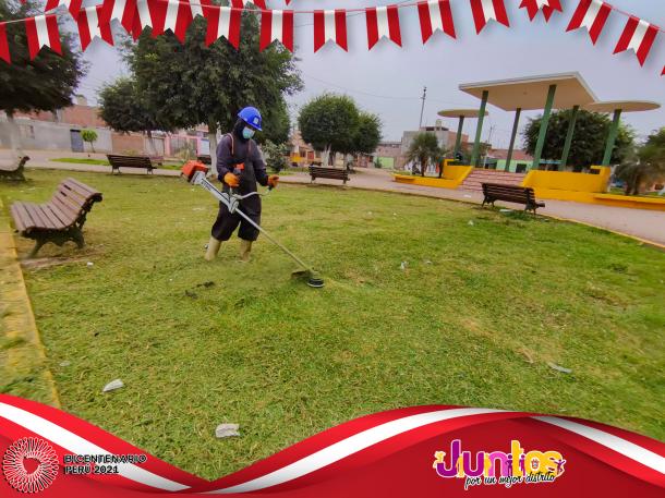 Para dichas acciones, el personal municipal contó con máquinas podadoras con las que se retiró el exceso de césped, así como el podado de árboles y plantas ornamentales, para finalmente realizar la limpieza y fertilización de todo el terreno con abono producido por la propia municipalidad en la PLANTA DE COMPOSTAJE.