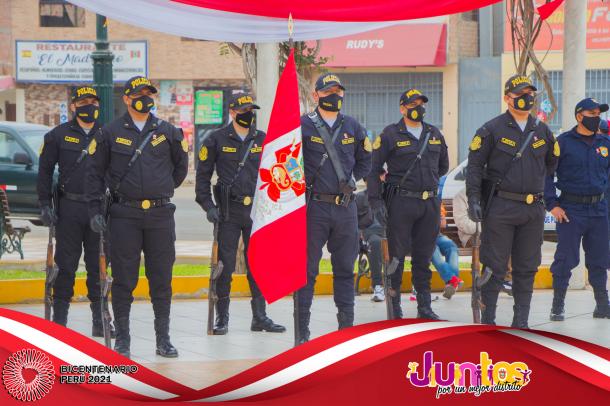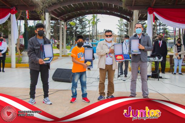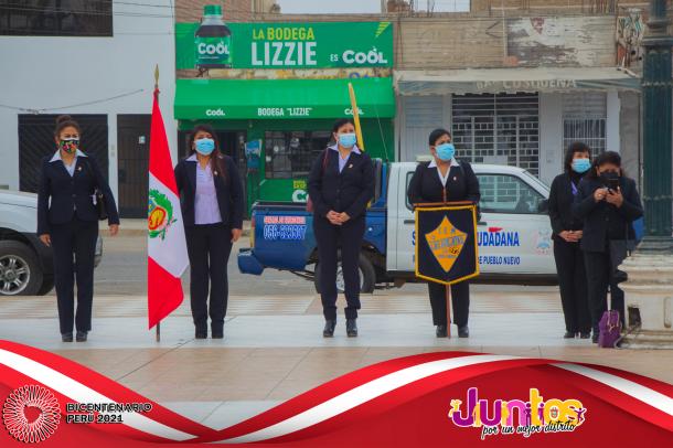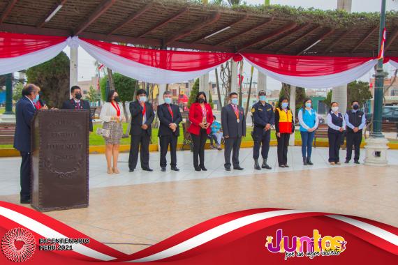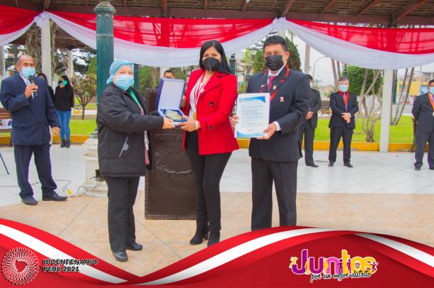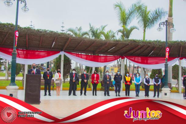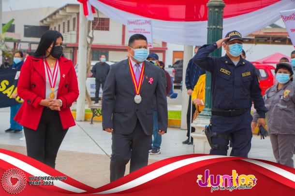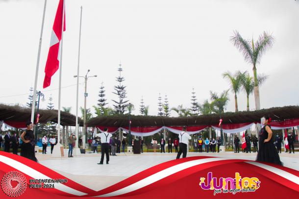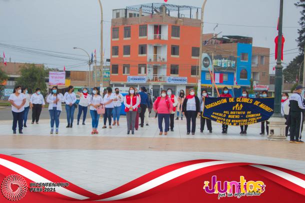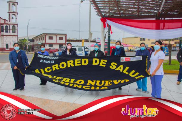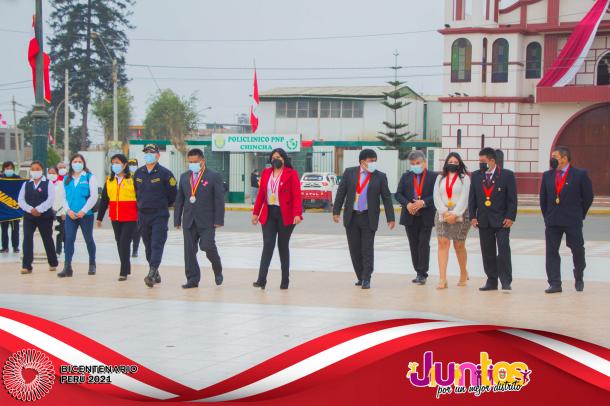 La actividad se inició con la Misa Te Deum en la parroquia Cristo Rey y posteriormente los actos centrales en la Plaza Mayor, con el izamiento del Pabellón Nacional, entonación del Himno Nacional, presentaciones artísticas de danzas y canto, entrega de reconocimientos al Centro de Salud de Pueblo Nuevo en mérito a su importante labor desarrollado por los profesionales para combatir el virus del COVID-19 y a los ciudadanos Luis Alberto Huertas Camargo, Sr. Jorge Joel Pachas Cueva, Jesús Leonel Pachas De La Cruz y Jefferson Leonardo Pachas De La Cruz por su destacada acción en defensa del Patrimonio Cultural de la Nación del sitio arqueológico de Pampa Canelo, acciones que les han valido tener el reconocimiento del Ministerio de Cultura por su loable trabajo como protectores de los vestigios históricos de la cultura Chincha.