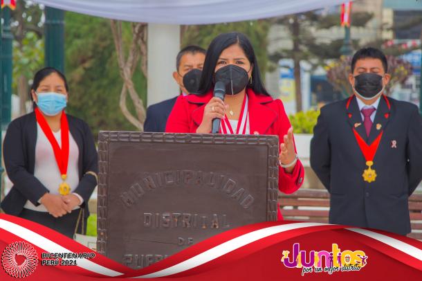 Finalmente la autoridad edil dio su mensaje, donde dio a conocer los avances realizados en obras de saneamiento de agua y alcantarillado, proyecto de infraestructura deportiva, proyecto de infraestructura educativa, proyecto de transitabilidad y ornato público, proyecto de infraestructura municipal, proyecto de electrificación y adquisición de pool de maquinarias pesadas. Culminando su participación la alcaldesa reiteró su compromiso de seguir trabajando por el desarrollo de Pueblo Nuevo.