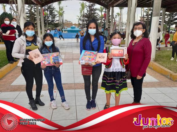 La entrega de los premios se realizó este miércoles 28 de julio en el evento cultural “festival de la Peruanidad”, con la presencia de los menores y sus padres, quienes agradecieron a la autoridad Bertha Peña por la realización de estos concursos, toda vez que motiva a sus hijos a seguir esmerándose y estudiante el arte de la declamación.