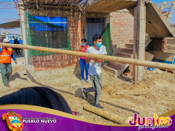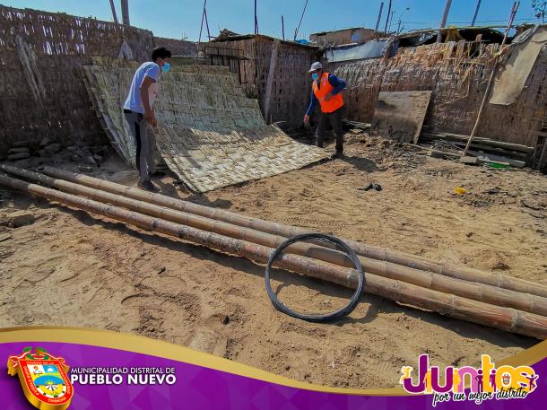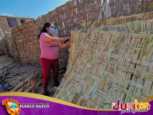 La entrega de la donación estuvo a cargo de la regidora Nidia Pérez Goitia en representación de la alcaldesa Bertha Peña Ormeño, recibiendo el propietario de la vivienda, Roy Lozano Palomino, esteras, palos de guayaquil y alambres para que pueda nuevamente construir el ambiente afectado sin ninguna preocupación de mayores gastos.
