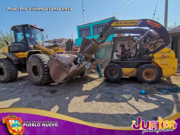 En asentamiento humano "El Trébol" se pudo recoger cerca de 180 toneladas de desmonte acumulados en la parte norte del asentamiento, vía obstaculizada por la acumulación de residuos. De igual manera en 'Santa Rosa", las maquinarias pesadas recogió 390 toneladas de basura y tierra, los cuales fueron recogidos de las diversas calles de la asociación.