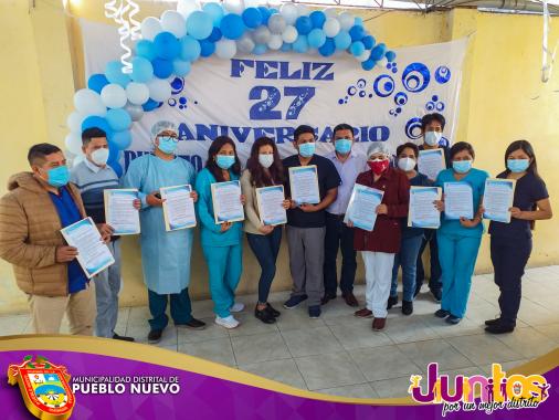 Al respeto los profesionales agradecieron a la autoridad edil por la entrega de este importante reconocimiento lo cual, les permite desenvolverse con mucho más entusiasmo y el compromiso de seguir contribuyendo en la mejora de la salud de los moradores del lugar y la lucha contra el Covid-19 ahora que se pronostica un tercer brote.