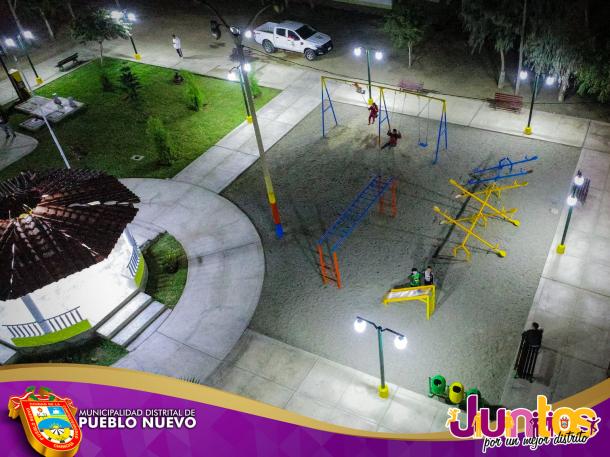 Este trabajo ahora cuenta con un eficiente sistema de iluminación, renovadas áreas verdes con grass americano y plantas ornamentales, mejoramiento de su parque infantil y pintado de todos los mobiliarios urbanos y de su rotonda