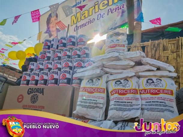 La nueva junta directiva de Vaso de Leche “Mariella Ormeño de Peña”, recibió una remesa completa de leche evaporada, quinuavena, además se le entrego una COCINA SEMI INDUSTRIAL DE TRES HORNILLAS y OLLAS, para la preparación del lácteo; finalmente de acuerdo al nuevo compromiso de la alcaldesa también se entregó productos de limpieza e implementos de bioseguridad sanitaria.