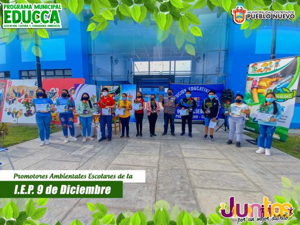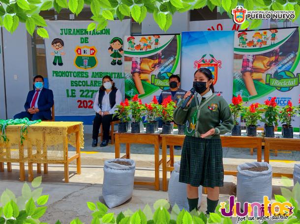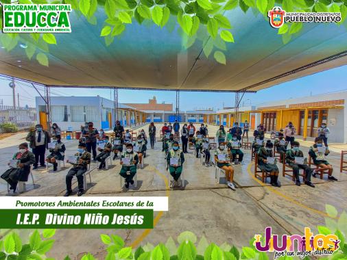 Sesenta niños de los tres niveles de educación básica, de las Instituciones Educativas Públicas Divino Niño Jesús, Dos de Mayo y 9 de Diciembre del Distrito de Pueblo Nuevo, juramentaron ayer martes 19 de octubre como Promotores Ambientales Escolares, asumiendo el compromiso de luchar en defensa del ecosistema.