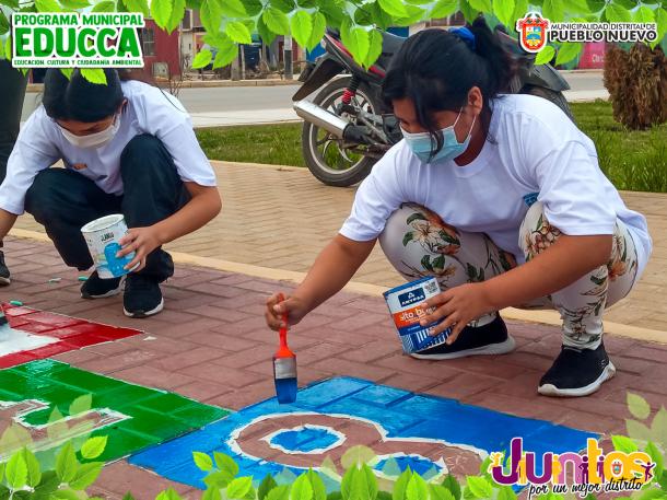 Esta acción de conciencia ambiental se realizó con el pintado de adoquines y/o señalización para el juego tradicional del mundo y juegos relacionados para una distracción sana en los vecinos y visitantes.