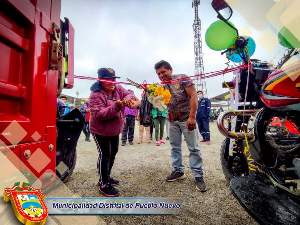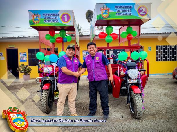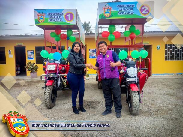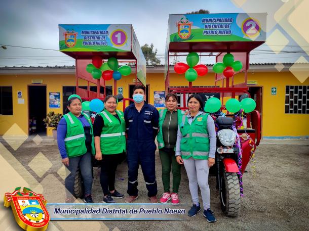 En una breve ceremonia donde participaron la Alcaldesa BERTHA PEÑA ORMEÑO, el Coordinador del Programa de Incentivos Prof. Juan Carlos Pachas Castilla, el responsable del Programa de Segregación en la Fuente Ing. Ángel Merino Carhuapoma e integrantes del programa; donde se presentó 2 nuevas motocargas para una capacidad de carga de 1 tonelada.