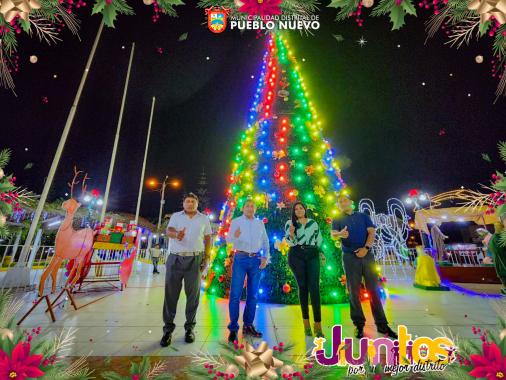 A pocas horas de celebrar la fecha más importante de nuestro calendario, la alcaldesa, Bertha Peña Ormeño, encendió el árbol navideño más grande de la región y luces en toda la plaza mayor del distrito, dando inicio oficialmente a las actividades que viene organizando la comuna por las fiestas navideñas.