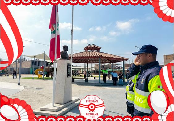 Con motivo del 34 aniversario del asentamiento humano Miguel Grau, se realizó la ceremonia de izamiento de la bandera en la plaza de este sector, donde asistió el alcalde del distrito de Pueblo Nuevo, Ing. William Sánchez Cahuana, acompañado de los regidores Ángel Vega Valentín, Jeampiere Aburto Saravia, Julia Portilla Vera, Hebert Quiroz Almeyda y Alcides de la Cruz Luyo, también, la Policía Nacional, la presidenta de este sector, señora Paula Atoche.