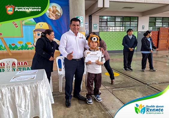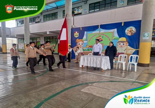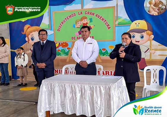 El alcalde del distrito de Pueblo Nuevo, Ing. William Sánchez Cahuana, participó de la ceremonia de inicio de semana en la institución educativa 22256 San Antonio de Padua.
