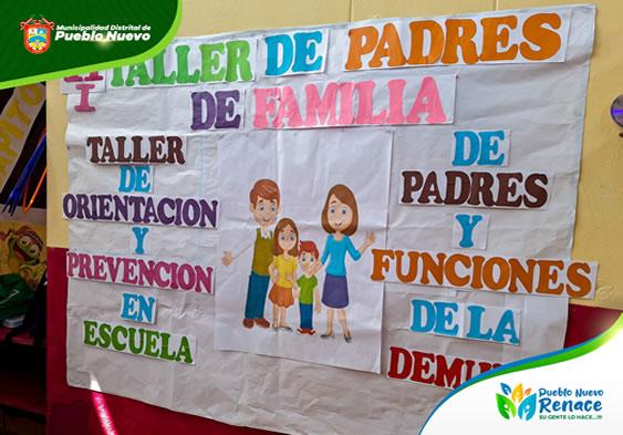Dirigida a los padres de niños de nivel inicial, la charla subrayó la importancia de mantener un acercamiento constante con sus hijos. Es por esto que la municipalidad de Pueblo Nuevo, liderada por el Ing. William Sánchez Cahuana, a través de la DEMUNA, promueve este tipo de orientaciones para apoyar a las familias en su labor educativa.