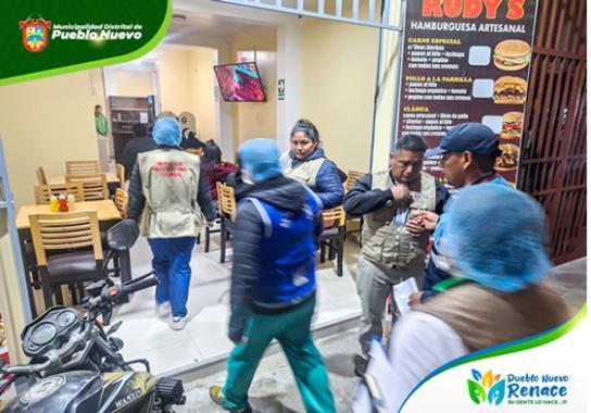 La Municipalidad Distrital de Pueblo Nuevo realizó un operativo sorpresa en la Plaza Mayor, interviniendo establecimientos dedicados a la venta de alimentos, como chifas, restaurantes, pollerías, pizzerías, entre otros.