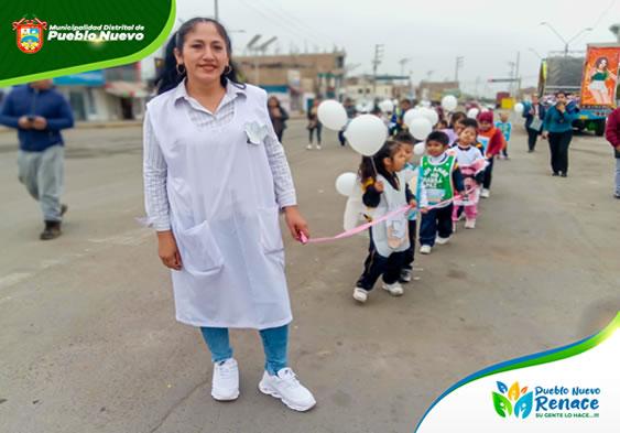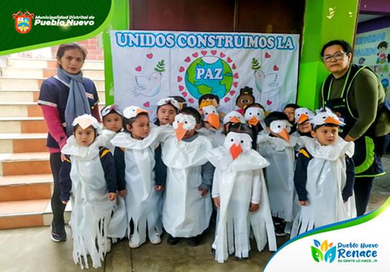 Los niños de nivel inicial de la Institución Educativa Las Abejitas participaron con entusiasmo en un vibrante pasacalle de concientización por el Día de la Paz