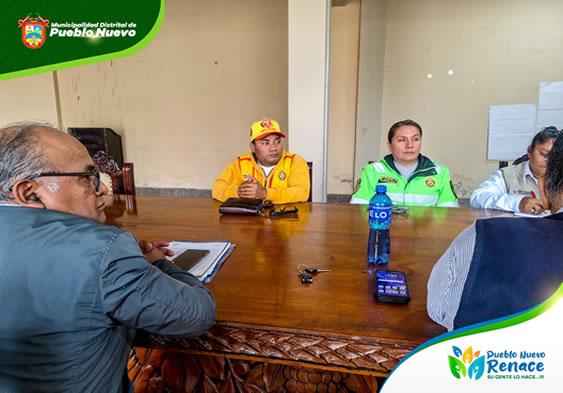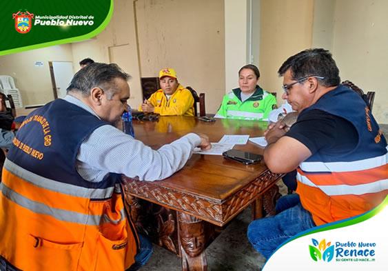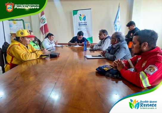 En las instalaciones de la municipalidad de Pueblo Nuevo, se llevó a cabo una importante reunión de trabajo de la Plataforma de Defensa Civil, presidida por el Ing. William Sánchez Cahuana, presidente de la plataforma del distrito. También participaron la Dra. Rocío Yataco Robles, subprefecta del distrito; la My. Rocio Palomino; Efraín Villanueva, representante de las juntas vecinales; Washington Espinoza Luján, secretario técnico; Alfredo Aldazabal de la Compañía de Bomberos; y el señor Flavio Gonzáles.