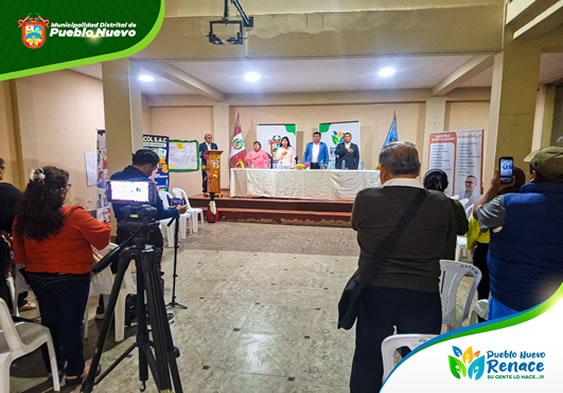 En el salón de actos de la Municipalidad de Pueblo Nuevo, se llevó a cabo una conferencia de prensa para conmemorar el 55 aniversario del mercado local. El evento contó con la presencia del alcalde del distrito, Ing. William Sánchez Cahuana, el Econ. César Gálvez Salvatierra, Ariana Fajardo y la señora Consuelo Raymundo, quienes compartieron detalles sobre las actividades programadas para esta celebración.