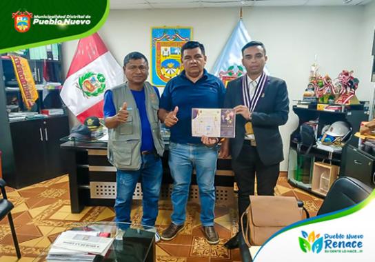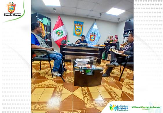 En la sala de alcaldía de la municipalidad de Pueblo Nuevo, el Ing. William Sánchez Cahuana, alcalde del distrito, recibió a los integrantes de la junta directiva de la hermandad del Señor de los Milagros de esta jurisdicción.