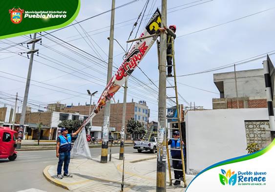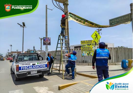 La municipalidad de Pueblo Nuevo, bajo la dirección del Ing. William Sánchez Cahuana, ha iniciado un operativo para retirar todos los paneles publicitarios sin autorización ubicados en la Av. Víctor Andrés Belaunde, la vía principal de la localidad. Esta medida, que forma parte del esfuerzo por mantener el orden y la seguridad en las calles, busca evitar que estos anuncios afecten la visibilidad de los conductores que transitan por la zona.