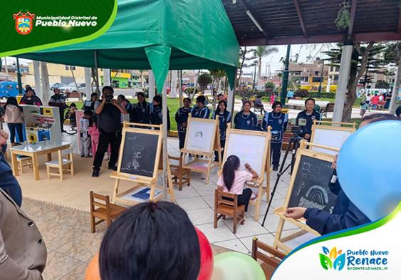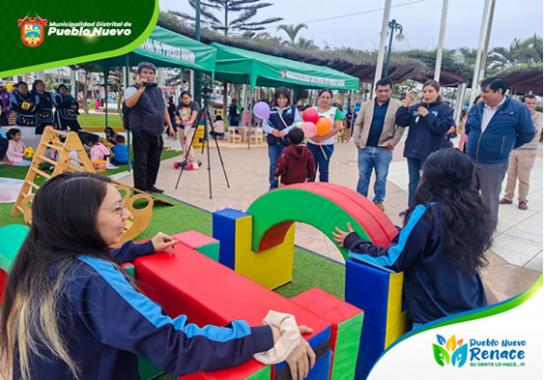 La plaza mayor del distrito de Pueblo Nuevo fue el escenario del lanzamiento del innovador proyecto denominado “Creando Espacios de Juego y Aprendizaje en Mi Comunidad”, promovido por la Ugel Chincha. En el acto de lanzamiento, estuvo presente el alcalde del distrito, Ing. William Sánchez Cahuana, quien resaltó la importancia de esta iniciativa, que brinda a los pequeños la oportunidad de disfrutar de diversos juegos lúdicos, diseñados para estimular su psicomotricidad.