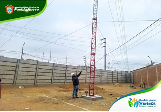 El Ing. William Sánchez Cahuana, alcalde de Pueblo Nuevo, realizó una inspección en la obra de construcción de la central de monitoreo de seguridad ciudadana, ubicada en el asentamiento humano Fé y Alegría. Durante la visita, se comprobó que ya está instalada la torre para la colocación de la antena de comunicación, un elemento crucial para el funcionamiento de la central.