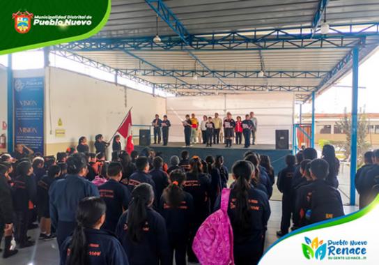 Esta visita forma parte de un cronograma de actividades que se lleva a cabo en las diferentes instituciones educativas, con el objetivo de concientizar a los estudiantes sobre la importancia de los valores cívicos y patrióticos. Durante la ceremonia, se destacó el entusiasmo de los alumnos, quienes están respondiendo de manera positiva en la entonación del himno del distrito de Pueblo Nuevo, reflejando un fuerte sentido de pertenencia y unidad.