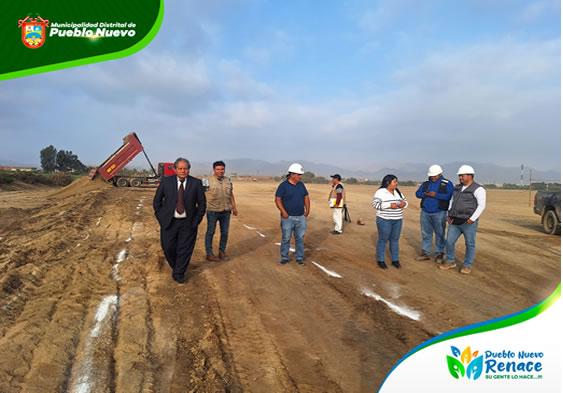 El Ing. William Sánchez Cahuana, alcalde del distrito de Pueblo Nuevo inspeccionó la obra de “mejoramiento de Transitabilidad Vehicular” que viene ejecutando la municipalidad en la prolongación Dos de Mayo, tramo Av. Los Girasoles hasta la Av. La Paz. La autoridad edil estuvo acompañado del Arq. Iván Valerio y su equipo técnico de catastro urbano. Además del Ing. Pedro Barahona, ingeniero residente que está a cargo de la ejecución del proyecto en esta importante arteria que se está aperturando.
