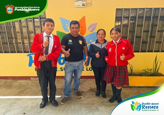 El alcalde del distrito de Pueblo Nuevo, Ing. William Sánchez Cahuana, sigue demostrando su compromiso con la educación al entregar instrumentos musicales a la banda de música de la institución educativa "Fe y Alegría".