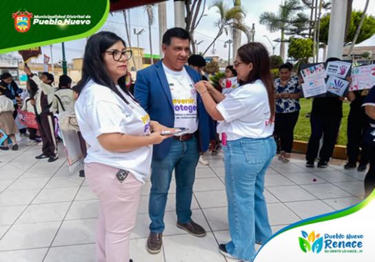 También participaron representantes de la Policía Nacional, las juntas vecinales, promotoras de salud y funcionarios de la municipalidad de Pueblo Nuevo, así como de los asentamientos humanos, todos unidos en un mismo objetivo: disminuir los casos de violencia contra las mujeres en la comunidad.