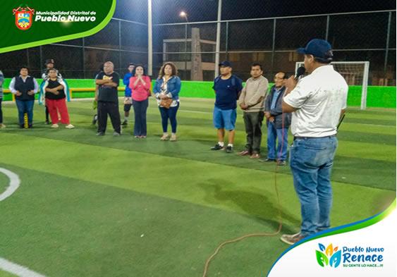 Los vecinos, con aplausos, ratificaron su apoyo al alcalde Ing. William Sánchez Cahuana, quien se comprometió a continuar con la recuperación de espacios deportivos y mantenerlos en óptimas condiciones para el beneficio de todos los deportistas de Pueblo Nuevo.